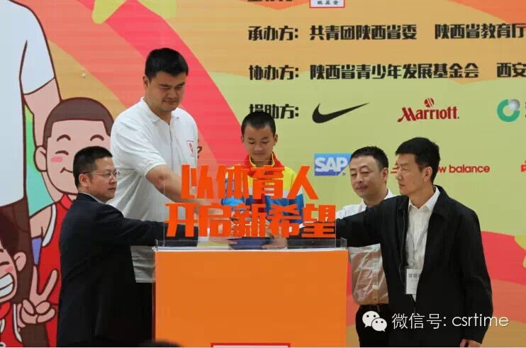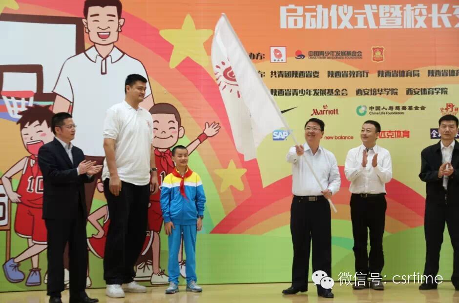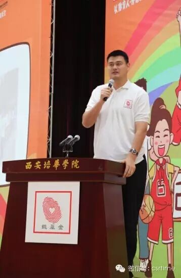 4月26日,2015姚基金希望小学篮球季再起航,2015姚基金希望小学篮球季启动仪式暨校长交流会,在陕西西安培华学院正式启动。姚基金发起人姚明、中国青少年发展基金会副秘书长王旭东、中国篮球协会副秘书长许闽峰,等社会各界代表出席了本次活动。